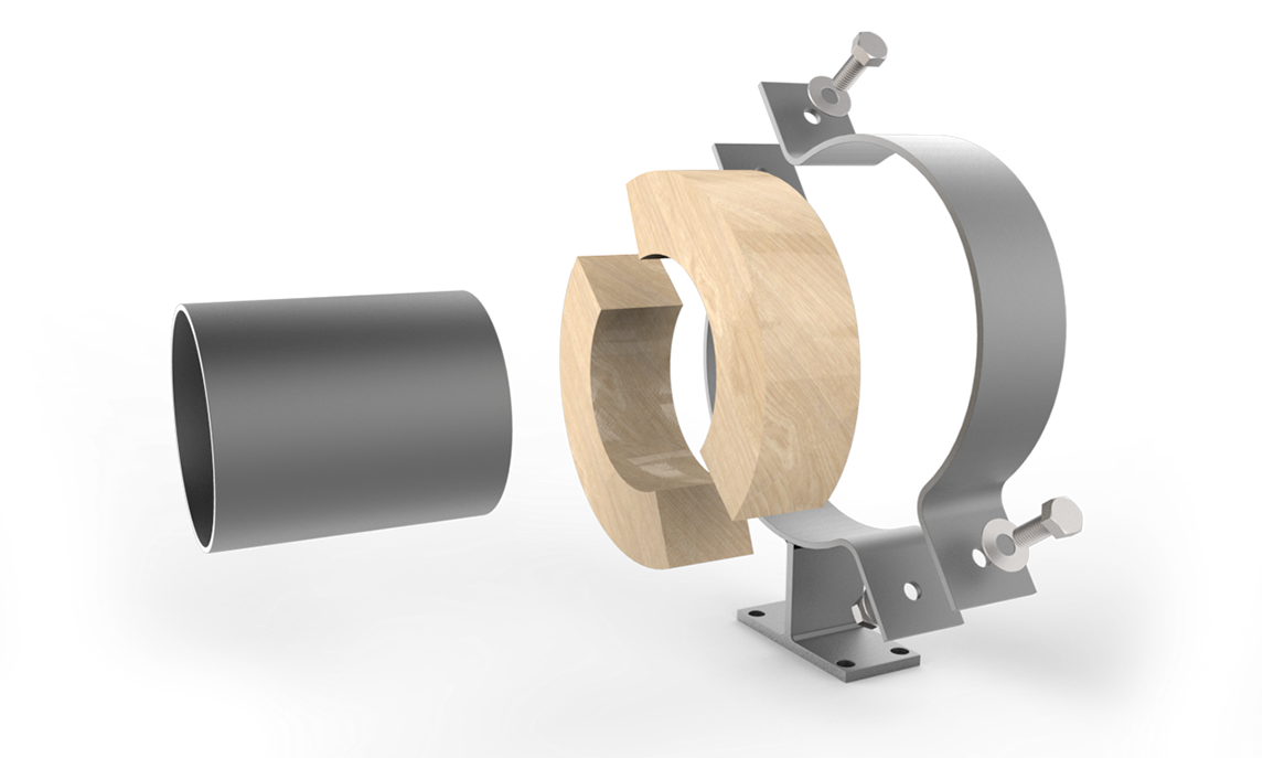 При проектировании и производстве колодок мы применяем современные технологии и станки с ЧПУ - это гарантирует плотное прилегание ложа к трубе и хомуту.